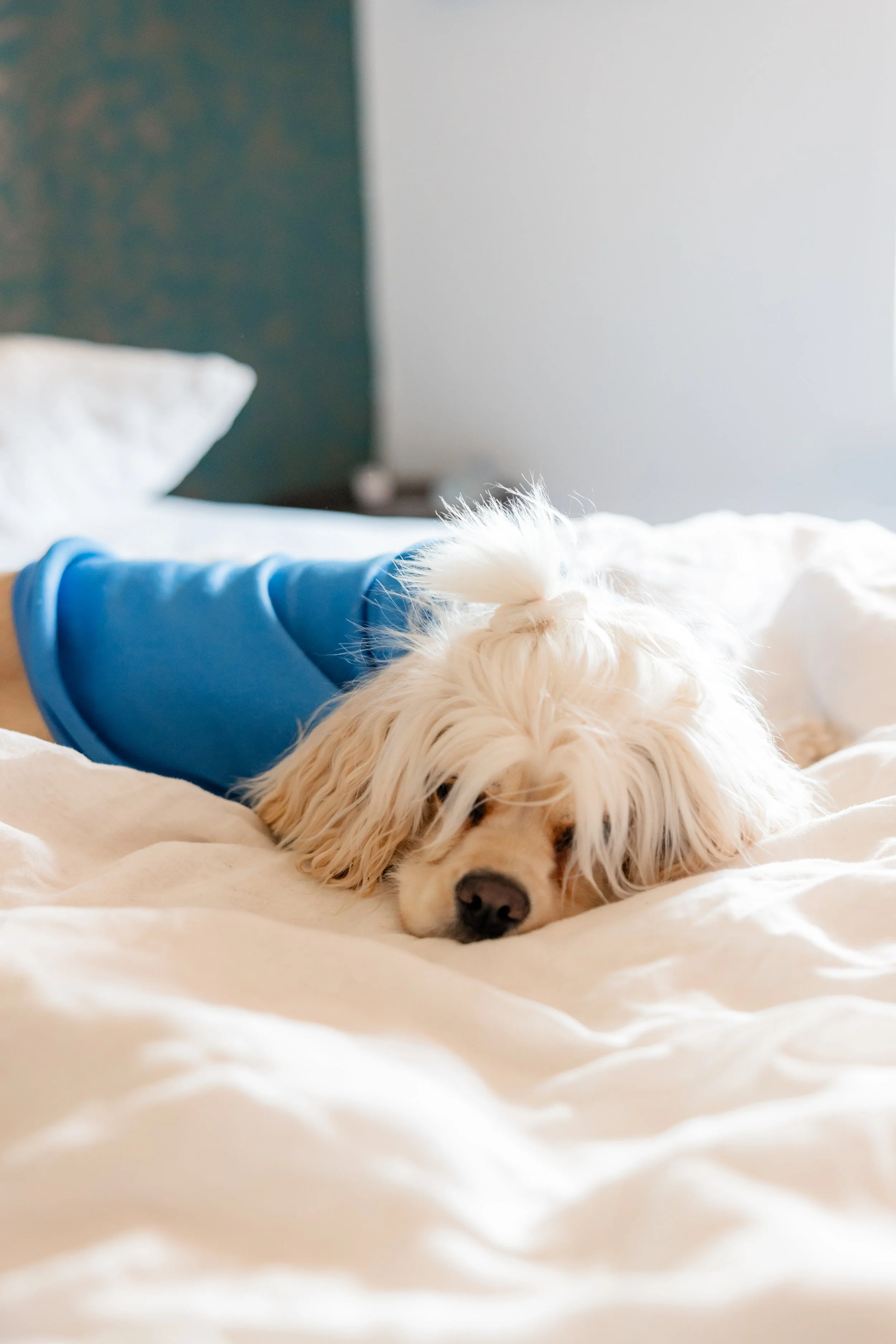 Linens | If pups sleep with you in bed, we require that a blanket is placed over the duvet & sheets in order to protect them from any sneaky mud stains. A blanket & towel is included in your dog basket.