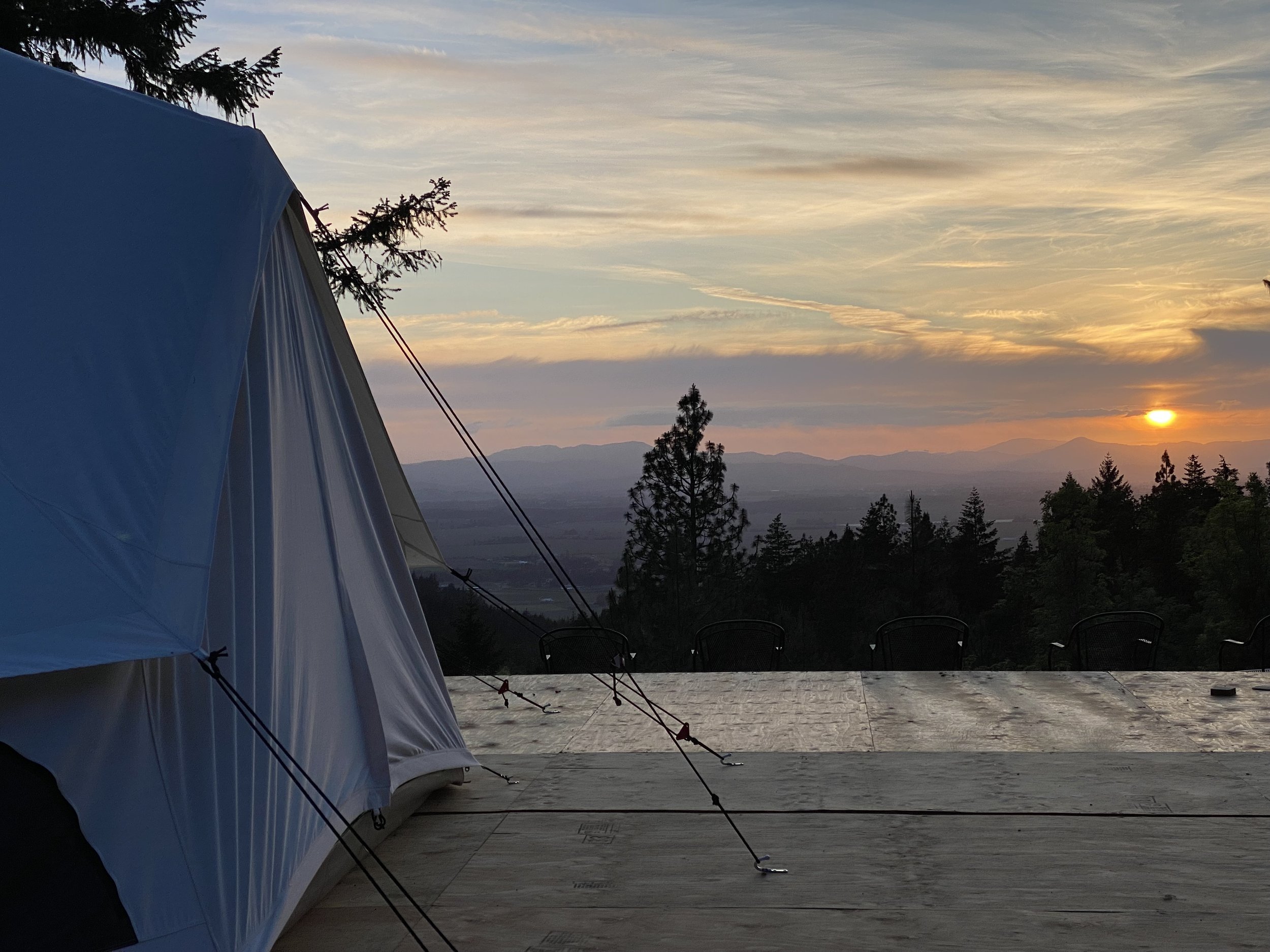 The first few years of operating Mount Tom House taught us that having additional overnight sleeping space for more of your family and friends to be on property would be valuable. So we’ve created Mount Tom View: a campsite space, accessed from our lower trail, that offers an elevated camping experience for up to 8 additional guests. The best part…the campsite has the best view on the property, giving guests a sweeping overlook of the beautiful Willamette Valley and coastal mountain range.